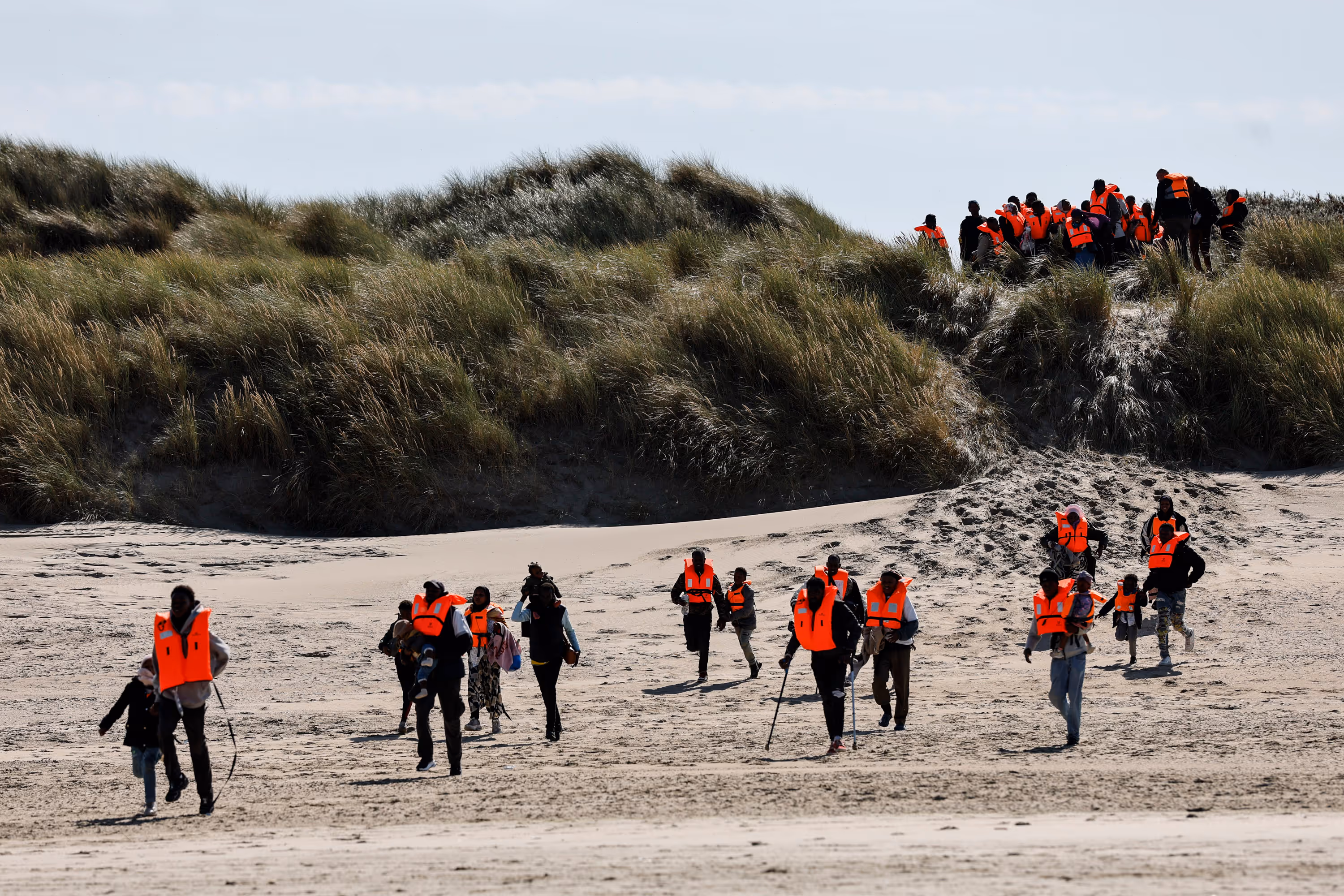 Des Migrants sur la plage de Gravelines attentent le feu vert pour partir.